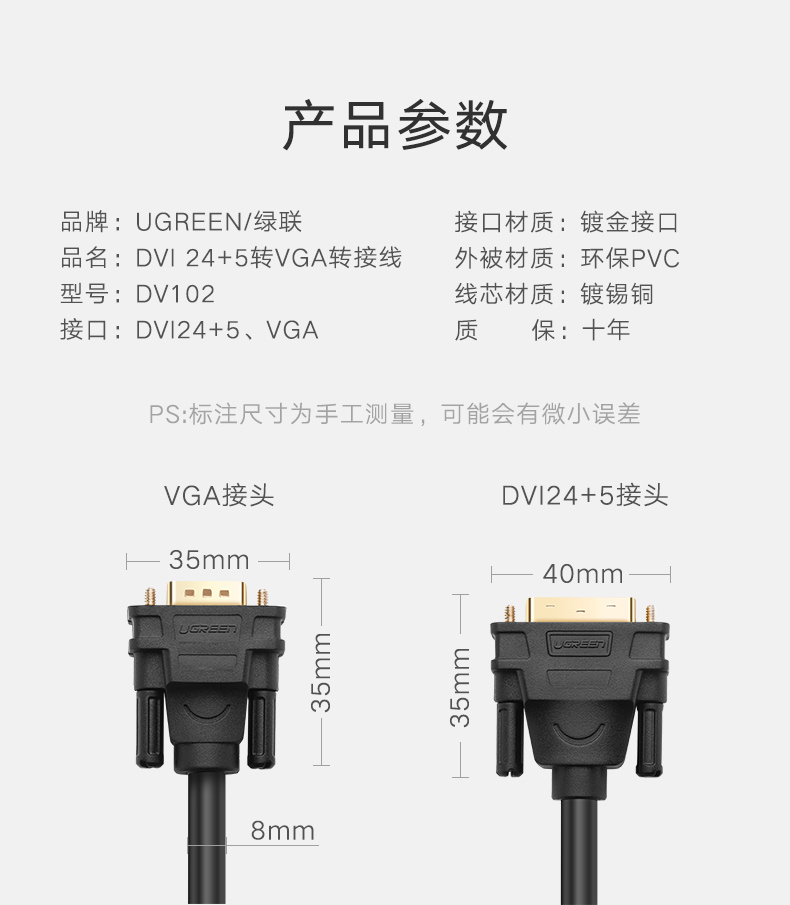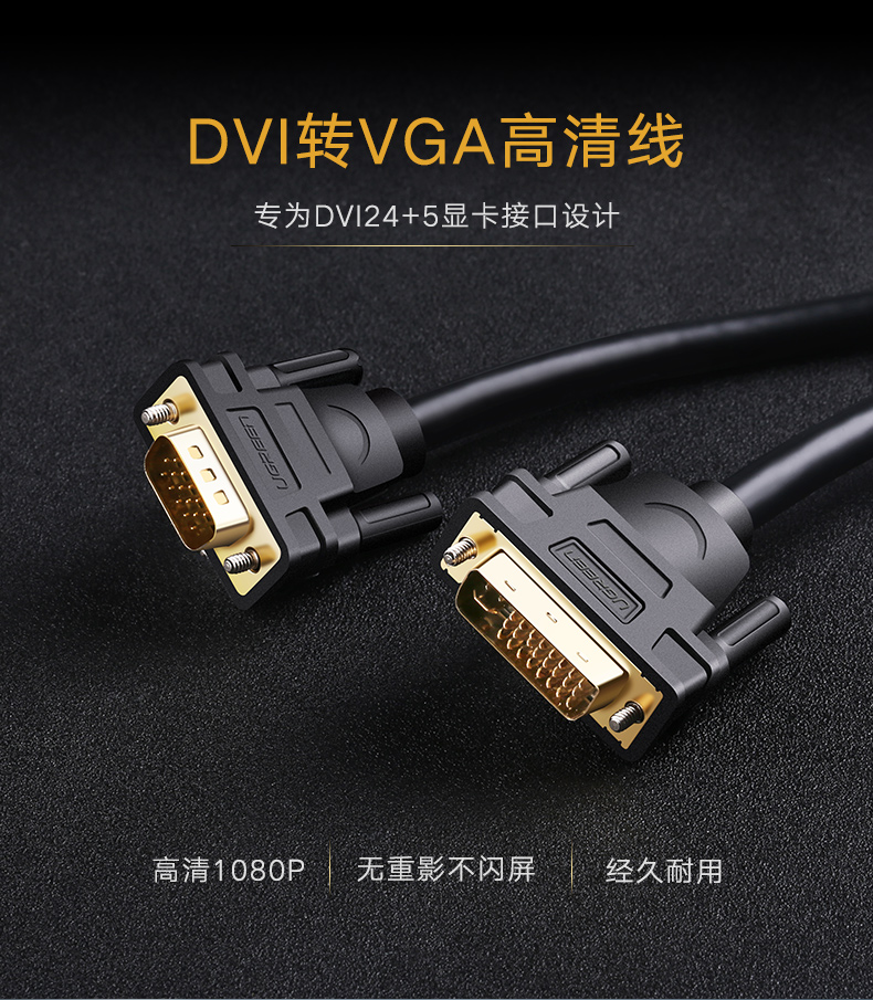 商品名称:绿联 dvi24+5转vga线公对公转接线头电脑显卡连接显示器高清 DV102