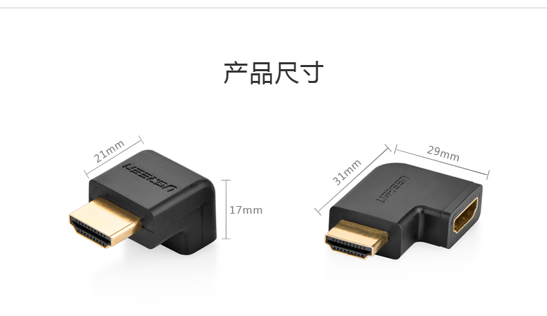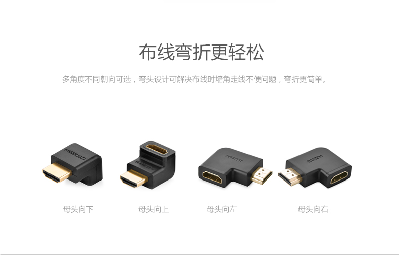 商品名称:绿联 HDMI转接头公对母 90度直角多朝向可选 hdmi转弯头 HD112