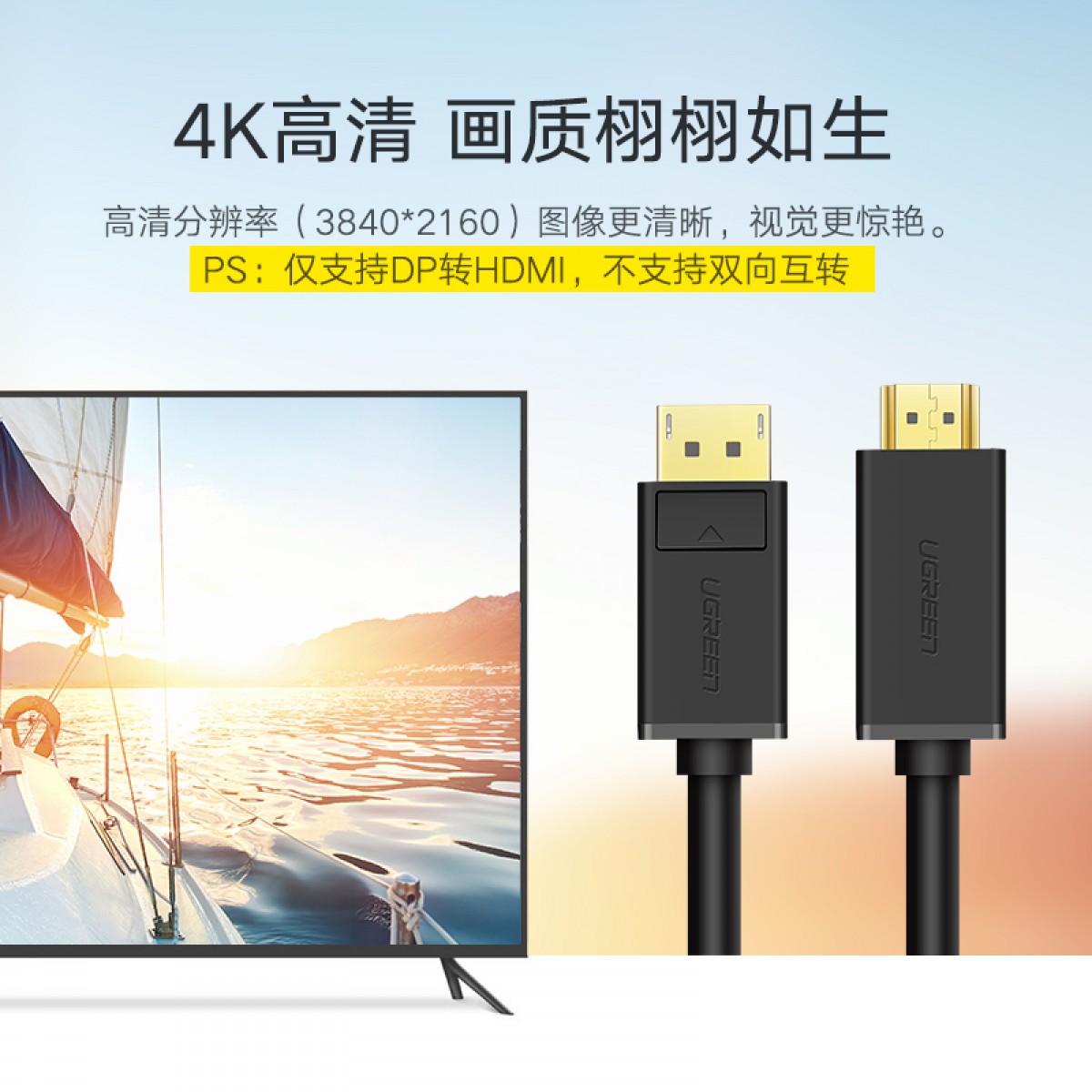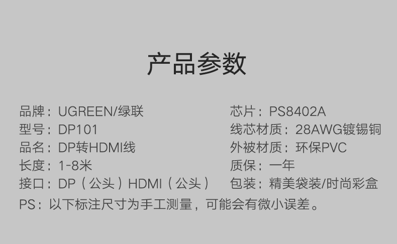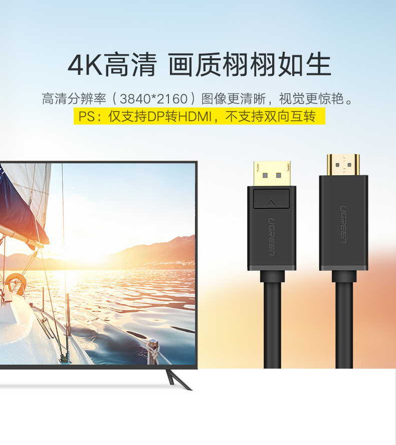 商品名称:绿联 dp转hdmi线 Displayport转换器HDMI4K高清视频转换接 DP101