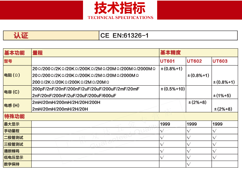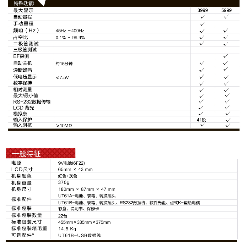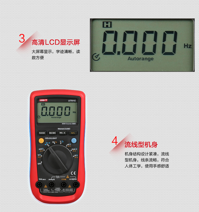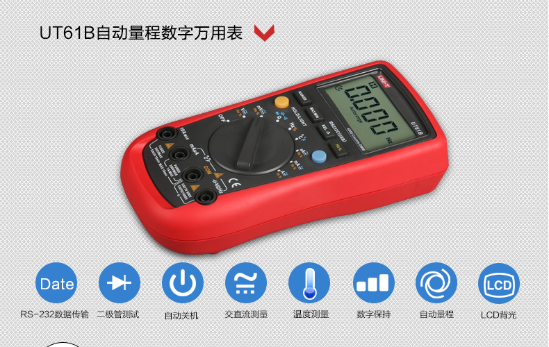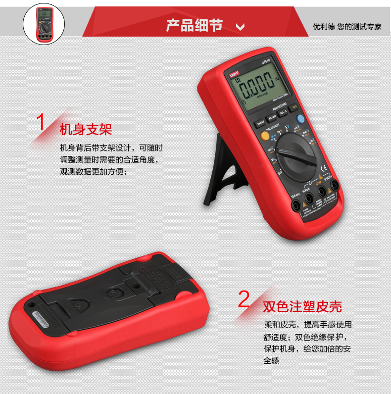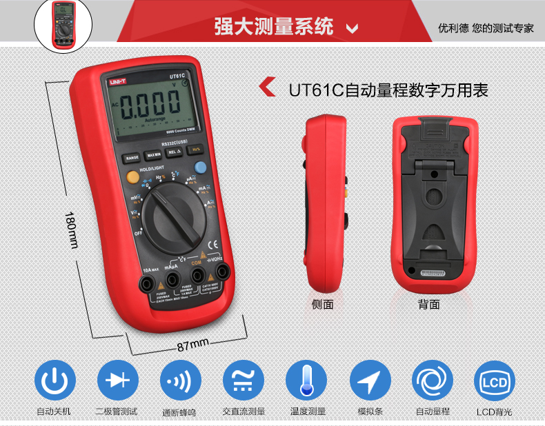 商品名称:优利德 万用表高精度四位半自动量程数字万能表电容电压表 UT61B/C