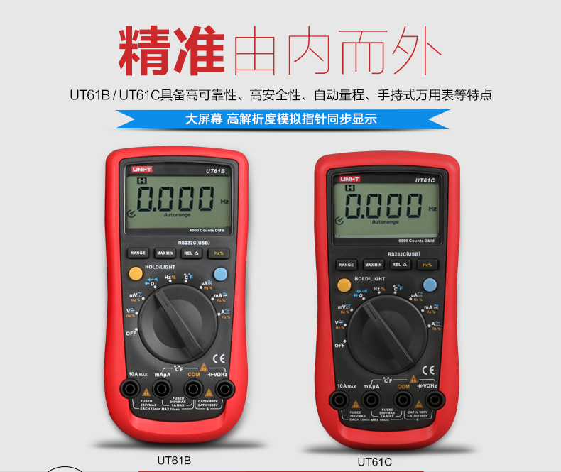 优利德 万用表高精度四位半自动量程数字万能表电容电压表 UT61B/C
