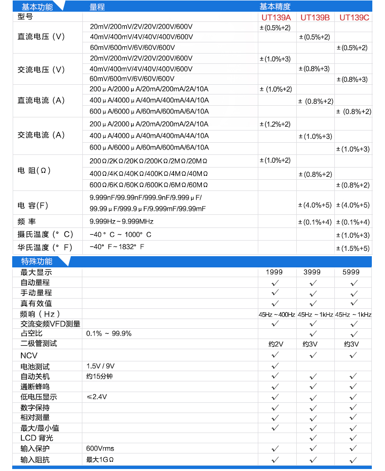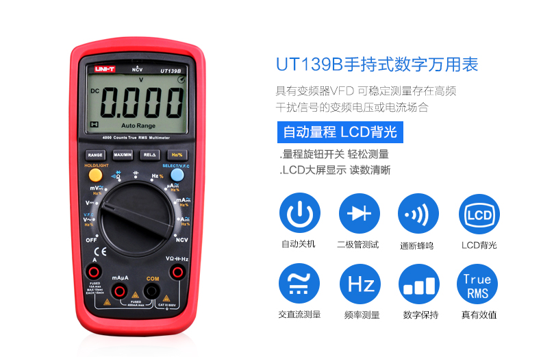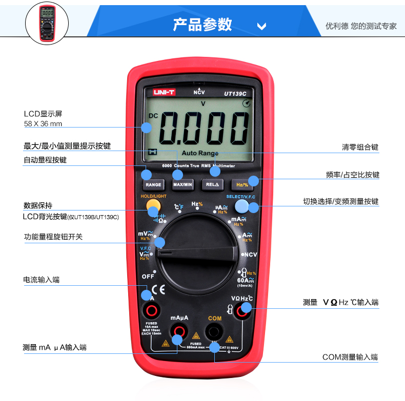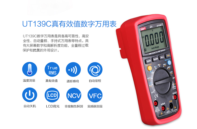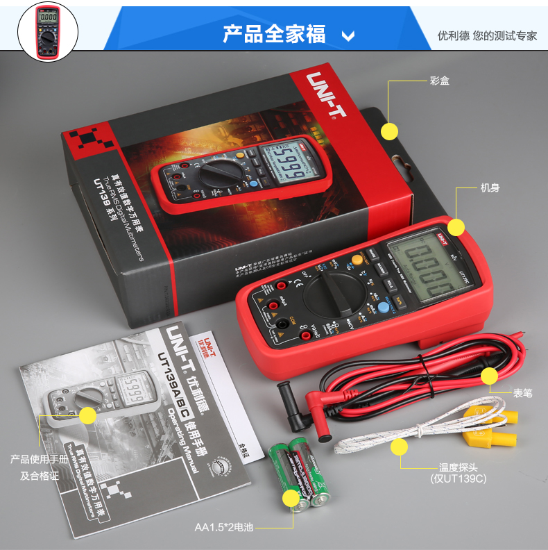 商品名称:优利德 万用表数字高精度电表防烧数显表背光防烧万用表数字 UT139