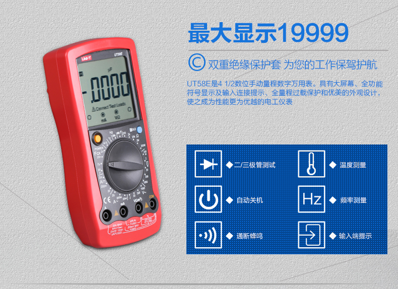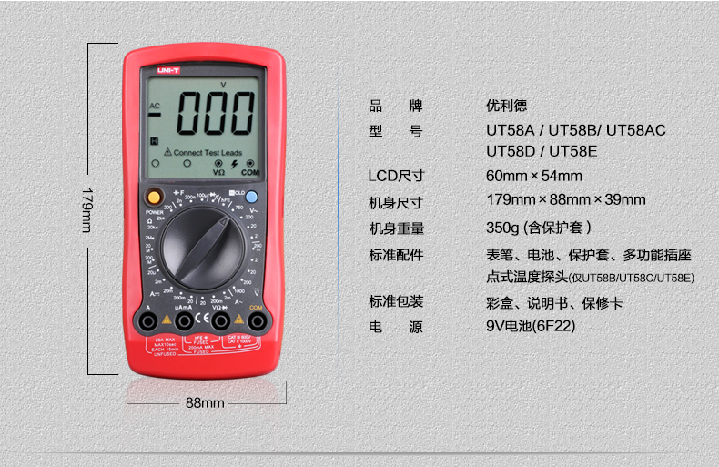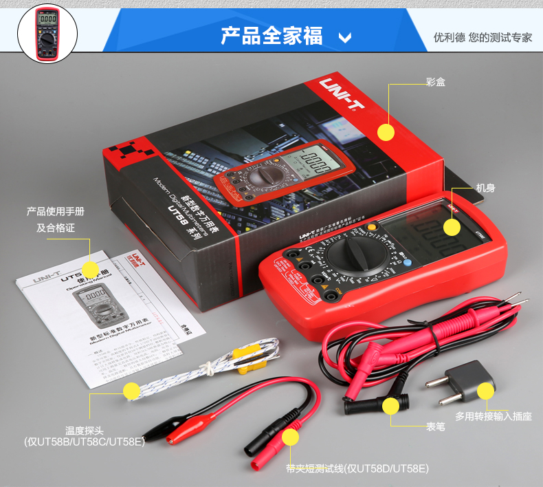 商品名称:优利德 高精度数字万用表万能表 数显手持多用表电表 UT58A/B/C/D/E
