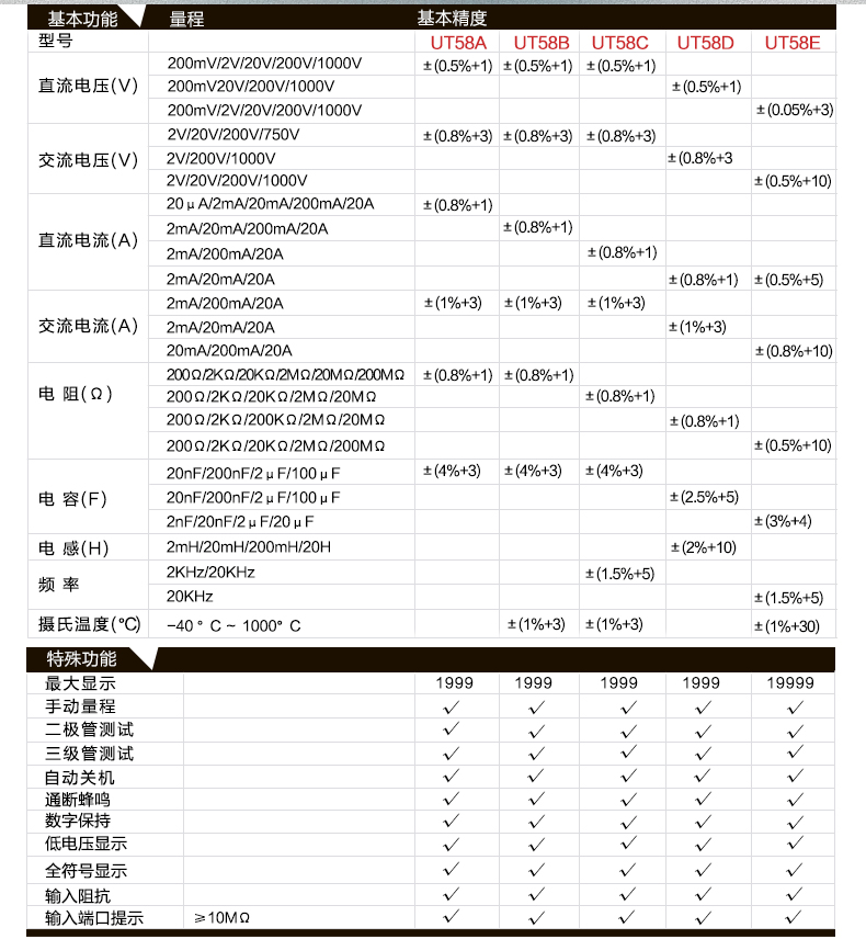 型号:UT58A/B/C/D/E