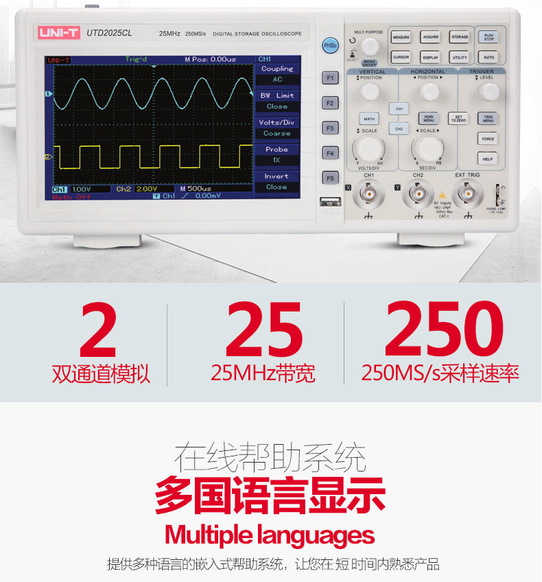 商品名称:优利德 数字示波器100m utd2102CEX双通道示波器数字 UTD2052CEX 50