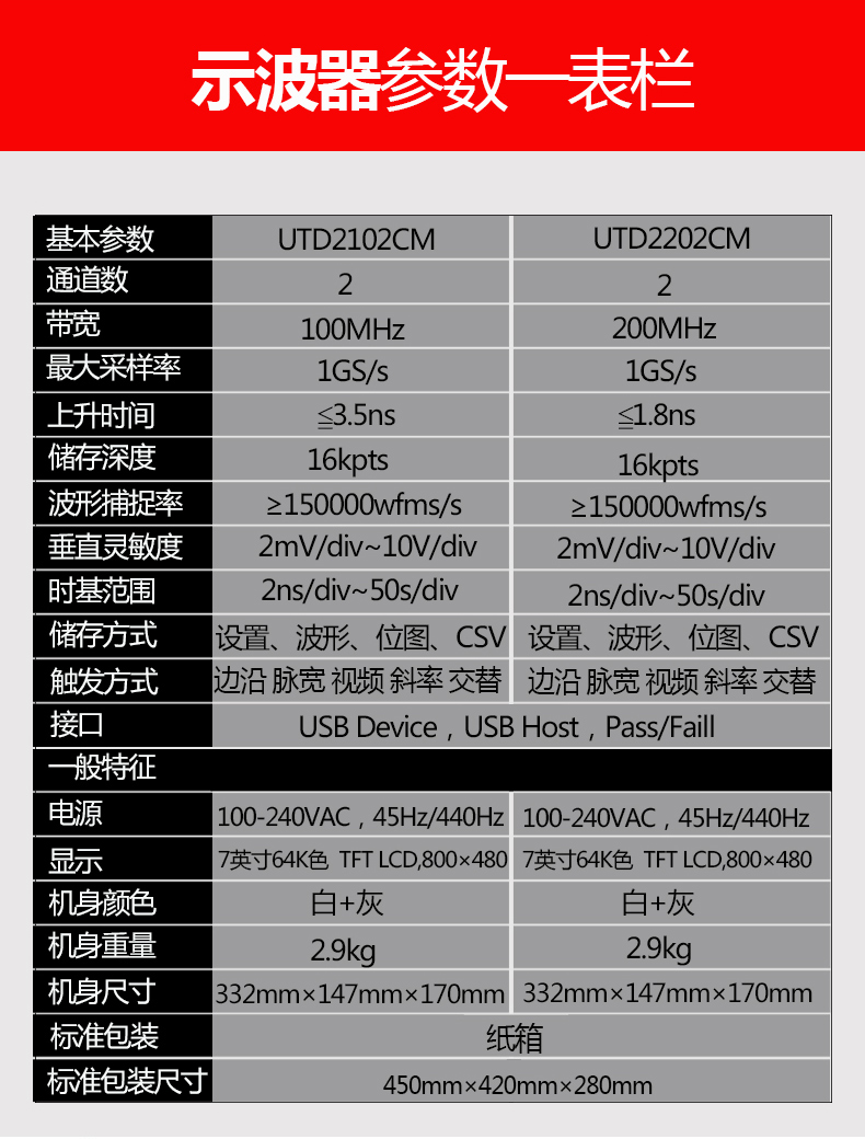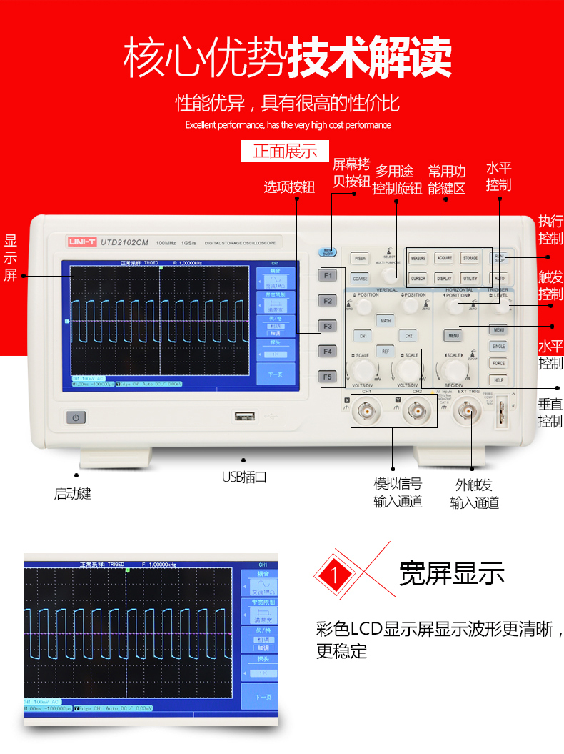 商品名称:优利德 数字存储示波器 UTD2102CM/2202CM