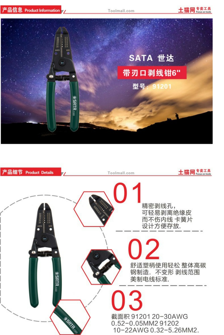 商品名称:世达 电工6寸剥线钳子多功能拨线钳电缆剥皮器7寸剥皮钳 91201