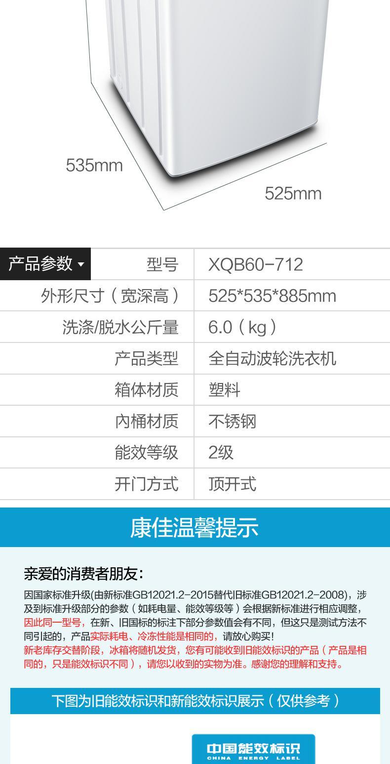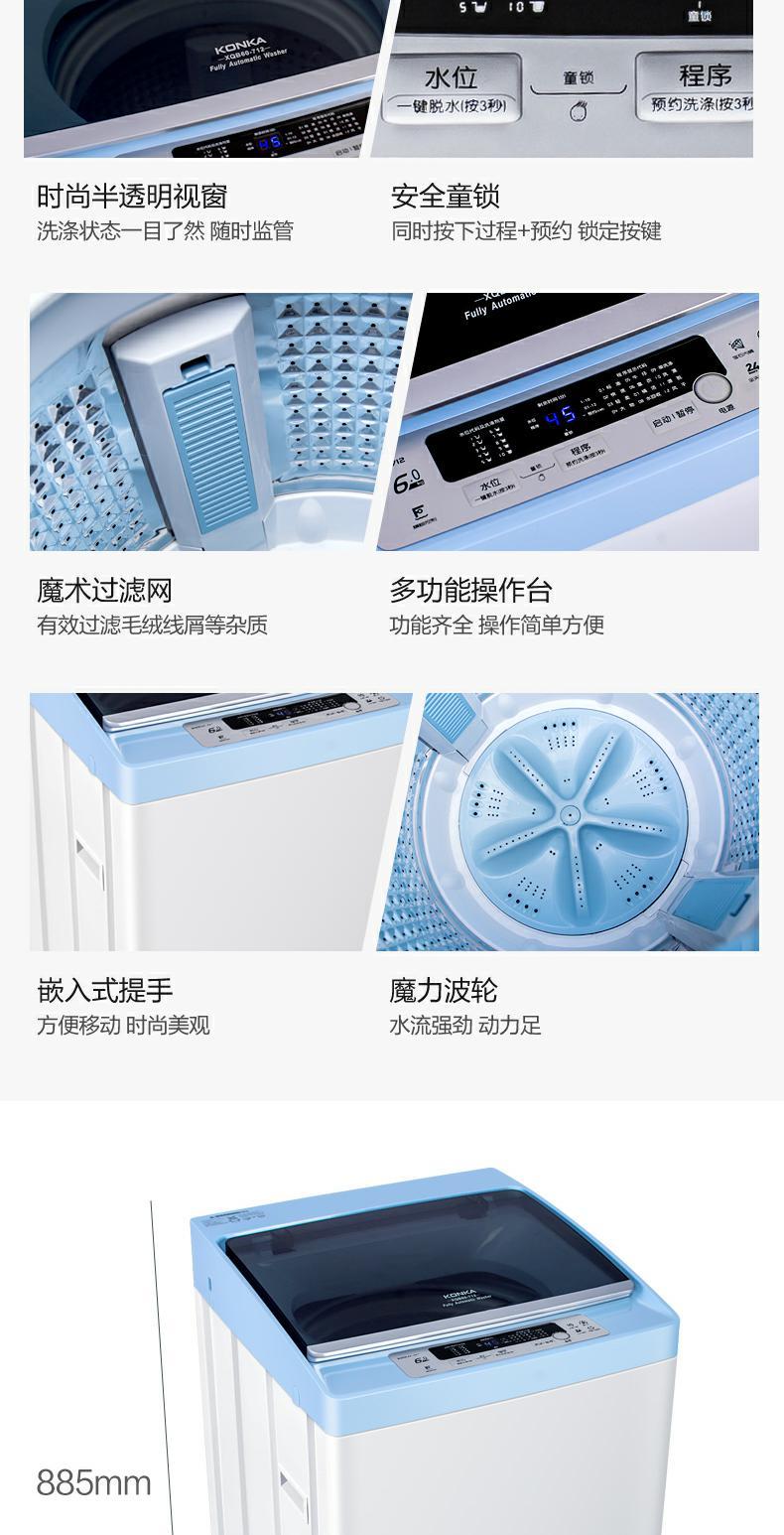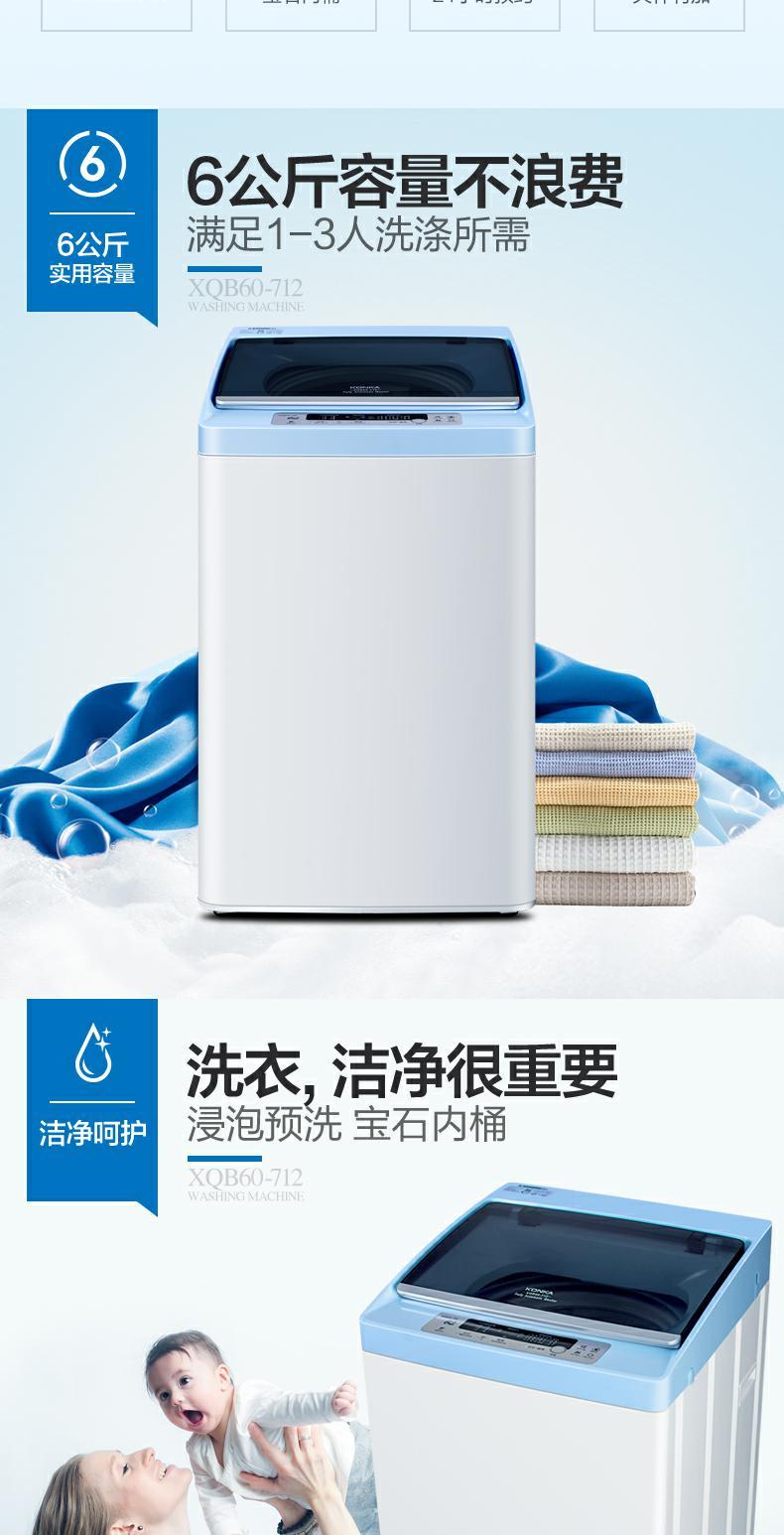 商品名称:Konka/康佳 洗衣机全自动家用6kg XQB60-712