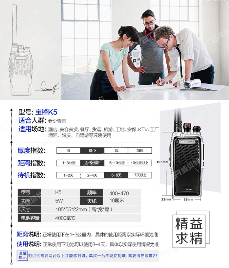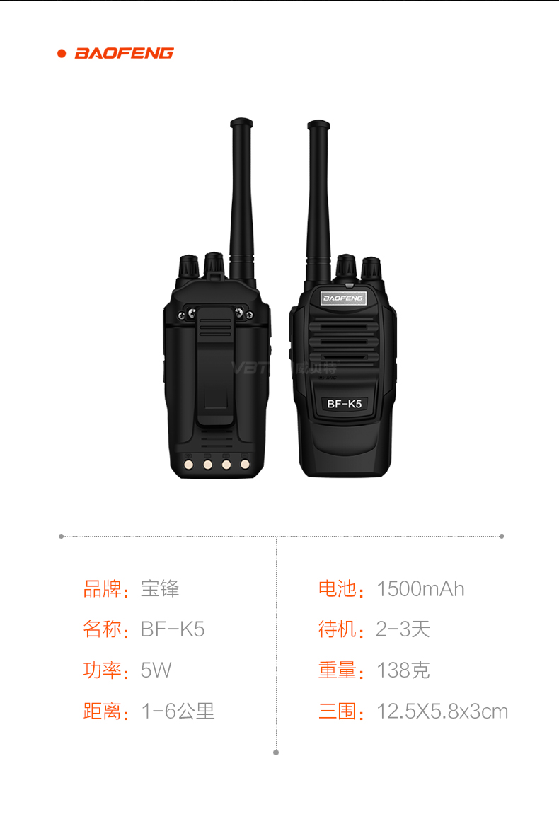商品名称:宝锋 民用1-50公里 非一对手台迷你型 无线 BF-K5