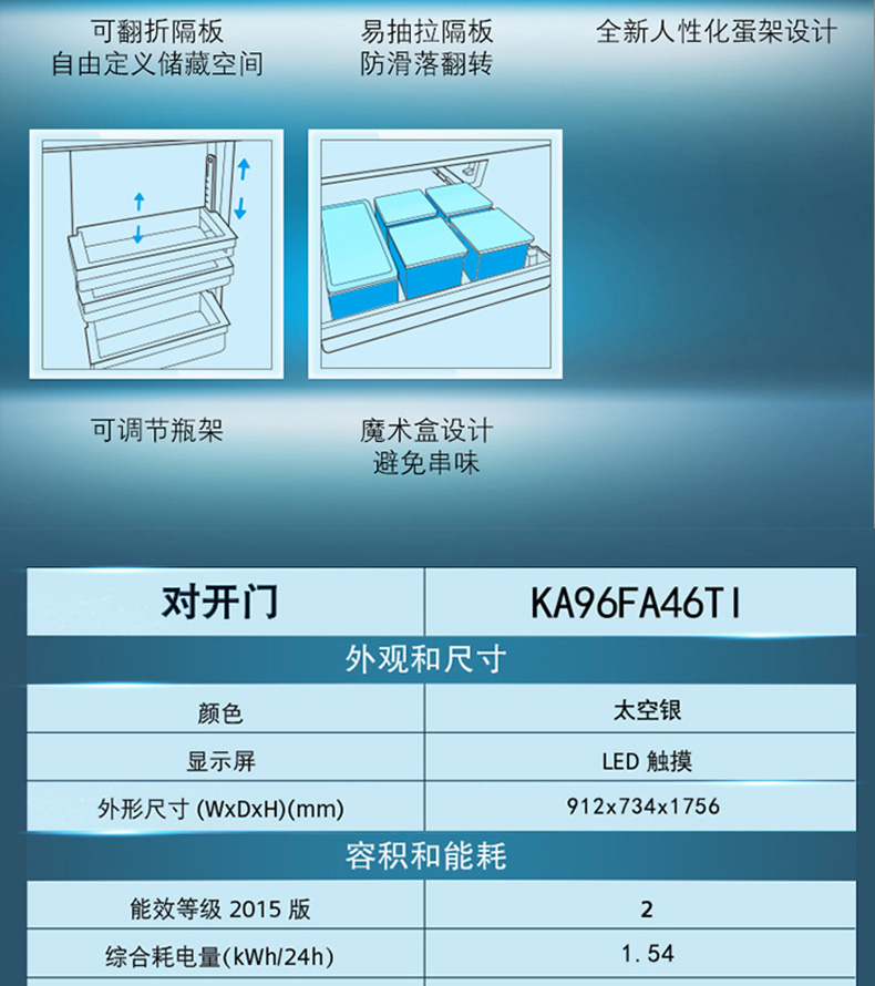 商品名称:西门子 变频对开门冰箱 KA96FA46TI