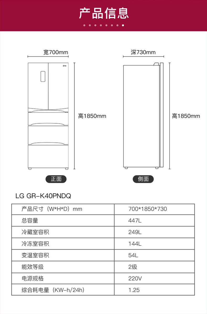 商品名称:LG 变频静音冰箱 GR-K40PNDQ