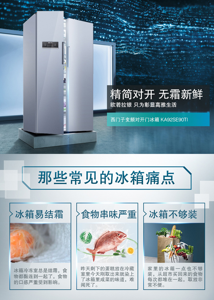 商品名称:西门子 对开门冰箱玻璃 KA92SE90TI