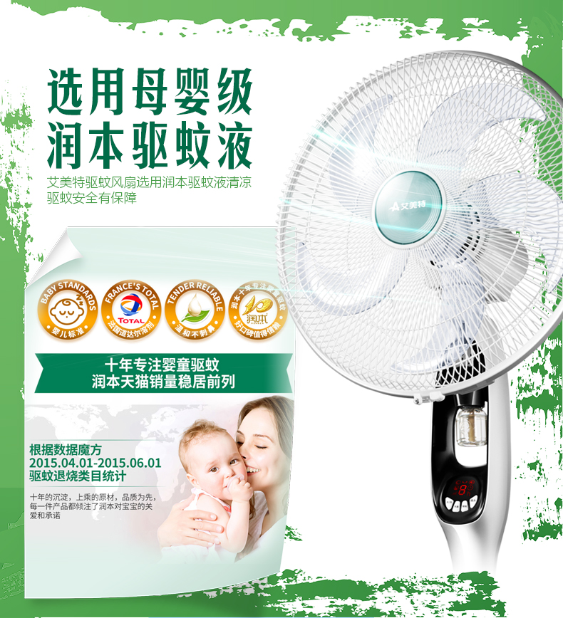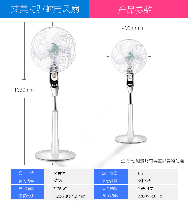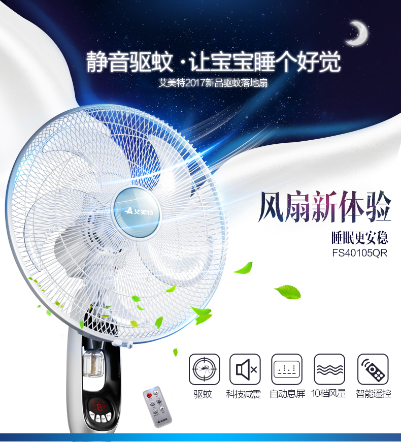 商品名称:艾美特 驱蚊风扇遥控落地扇 FS40105QR