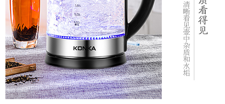商品名称:Konka/康佳 304不锈钢食品级玻璃烧水壶 KEK-15DG1720