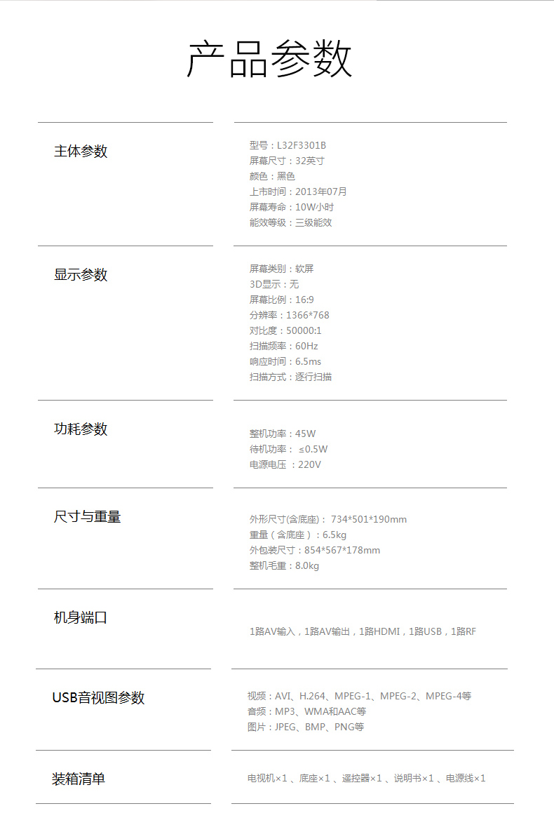 商品名称:TCL 32英寸 超窄边平板蓝光 液晶电视 L32F3301B