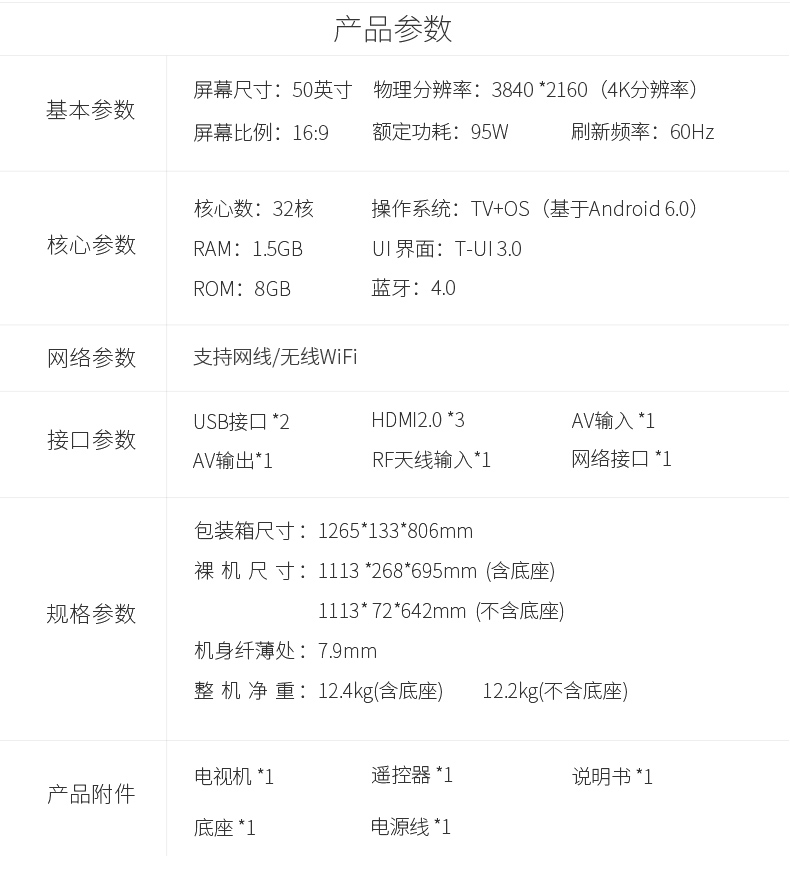 商品名称:TCL 50英寸 4K安卓智能LED液晶电视 50A860U