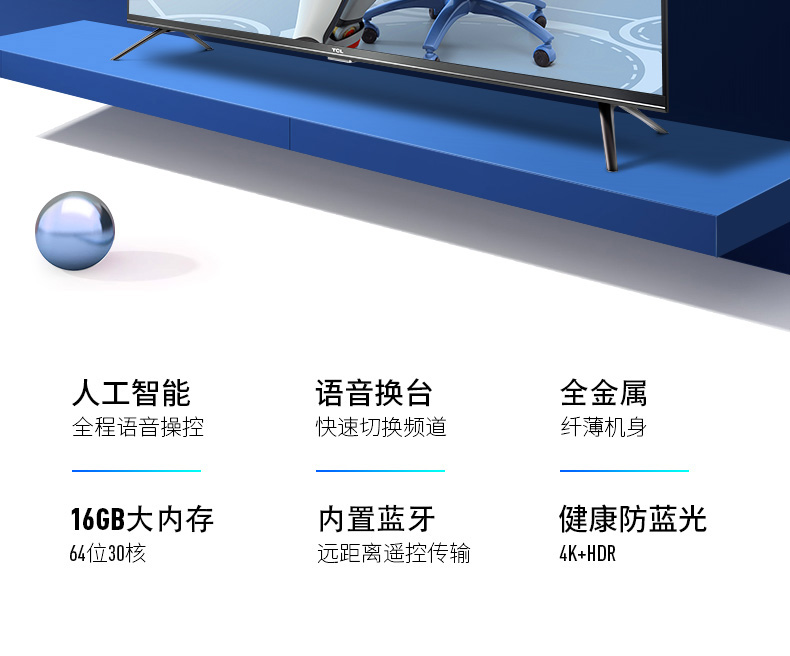 商品名称:TCL 55英寸 全金属人工智能电视 55V2
