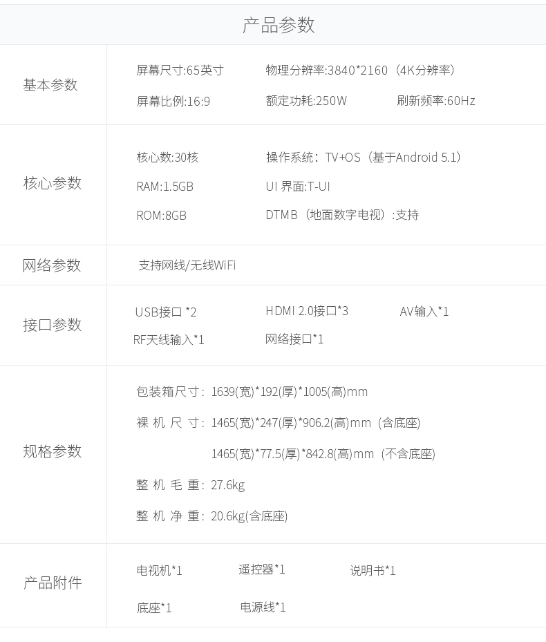 商品名称:TCL 65英寸 安卓智能LED液晶电视 65A730U