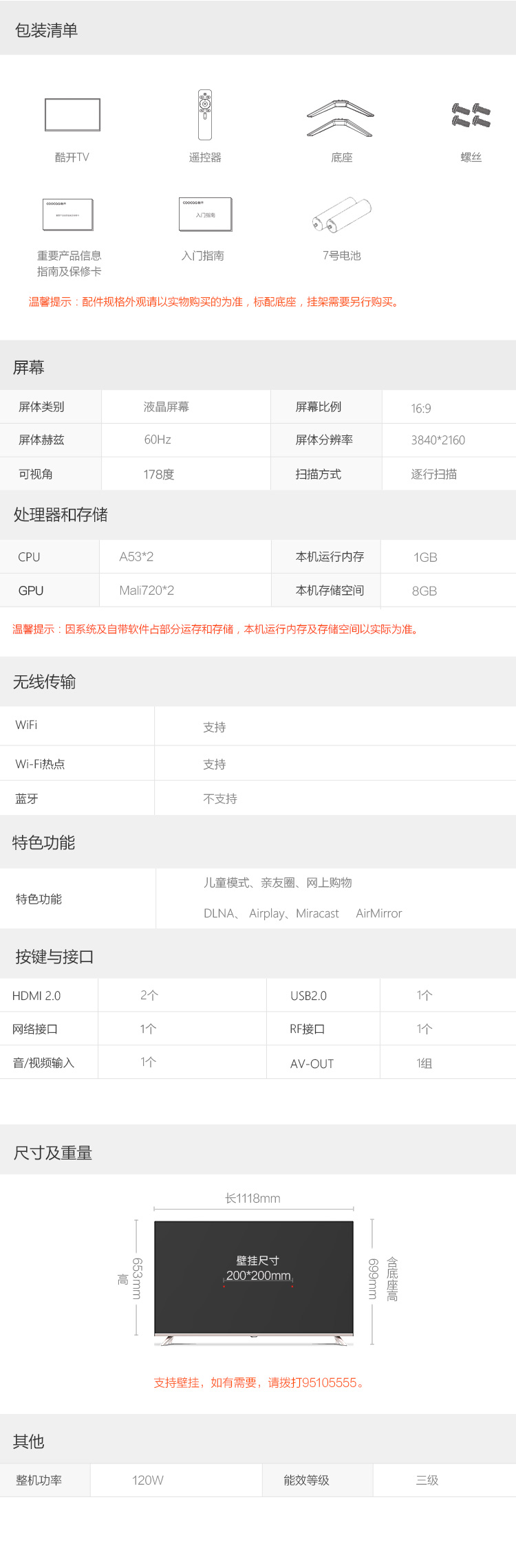 商品名称:coocaa/酷开 50英寸智能网络wifi电视机 50K5A