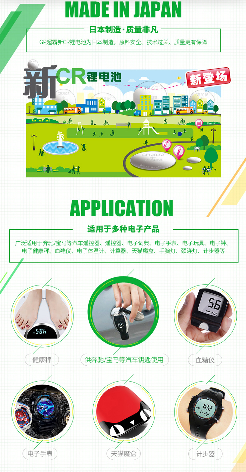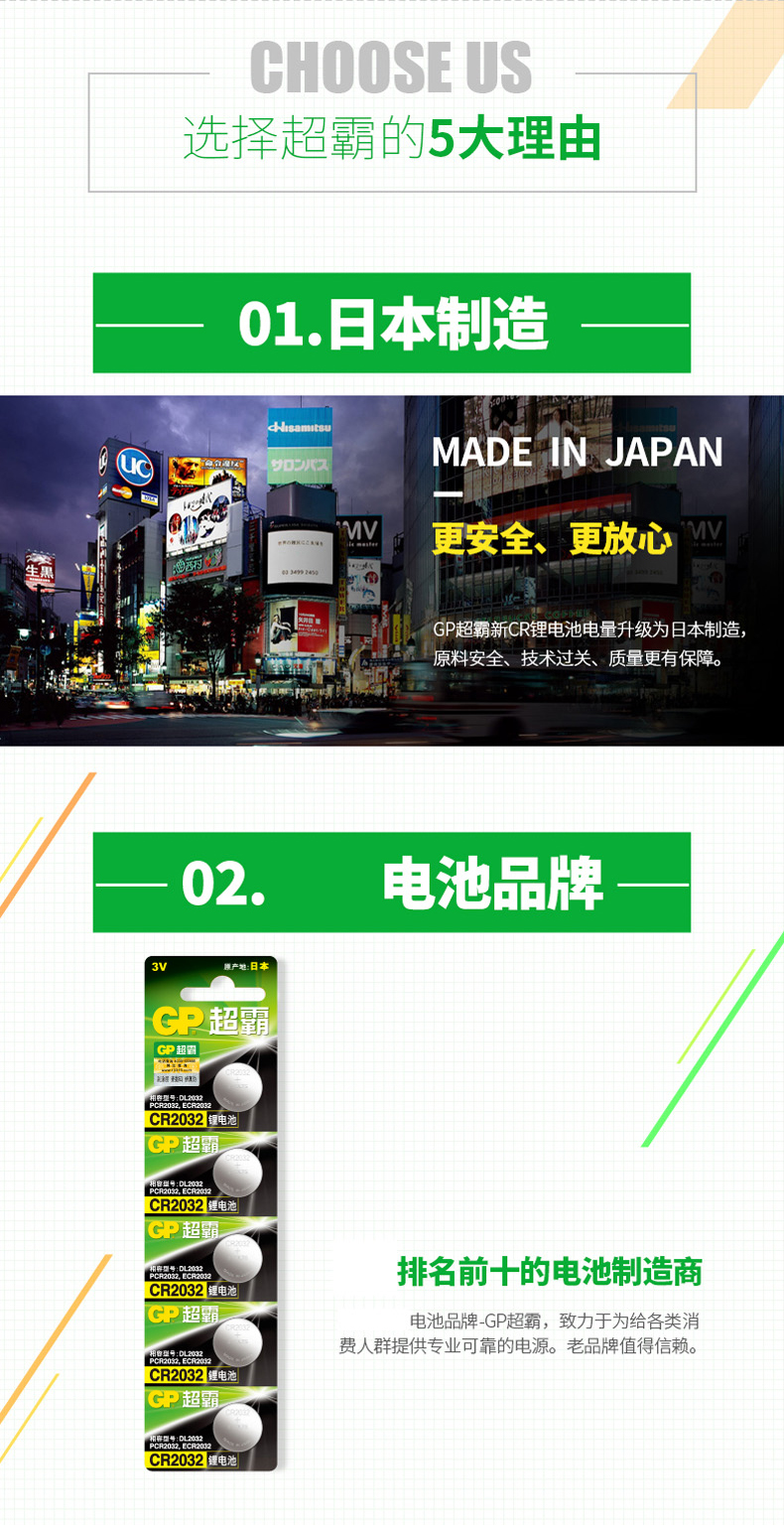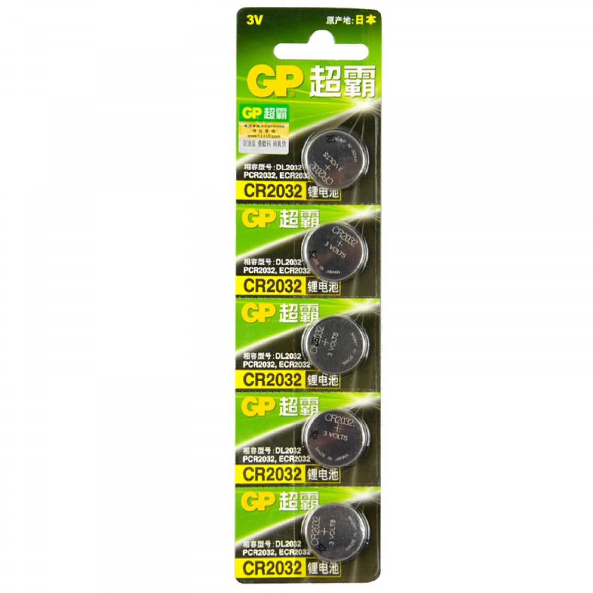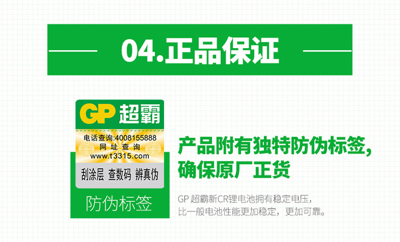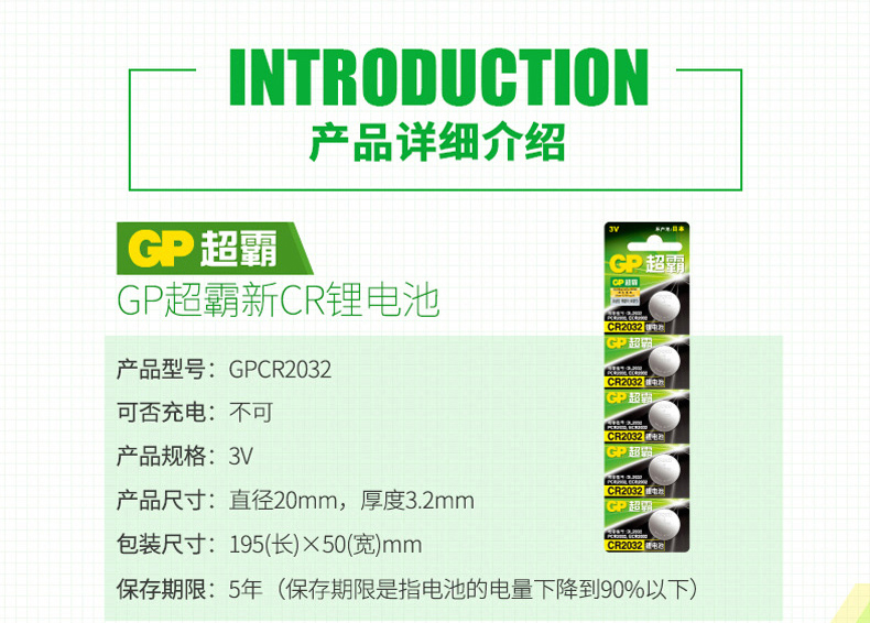 商品名称:GP超霸 纽扣电池3v 5粒 cr2032