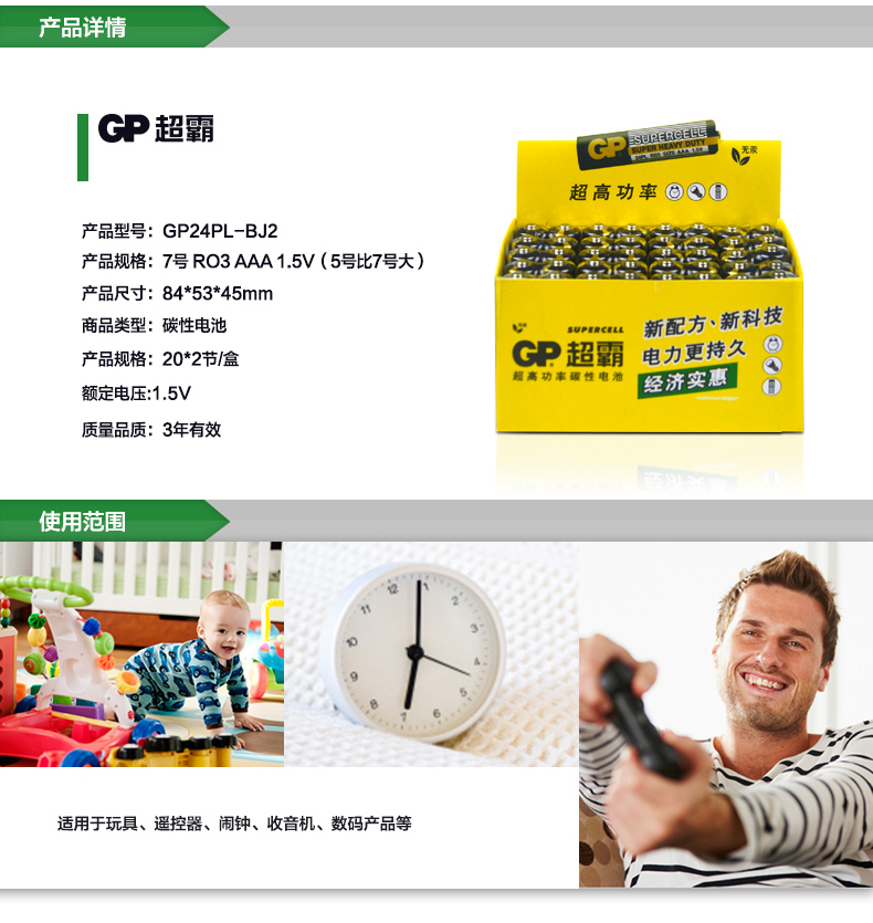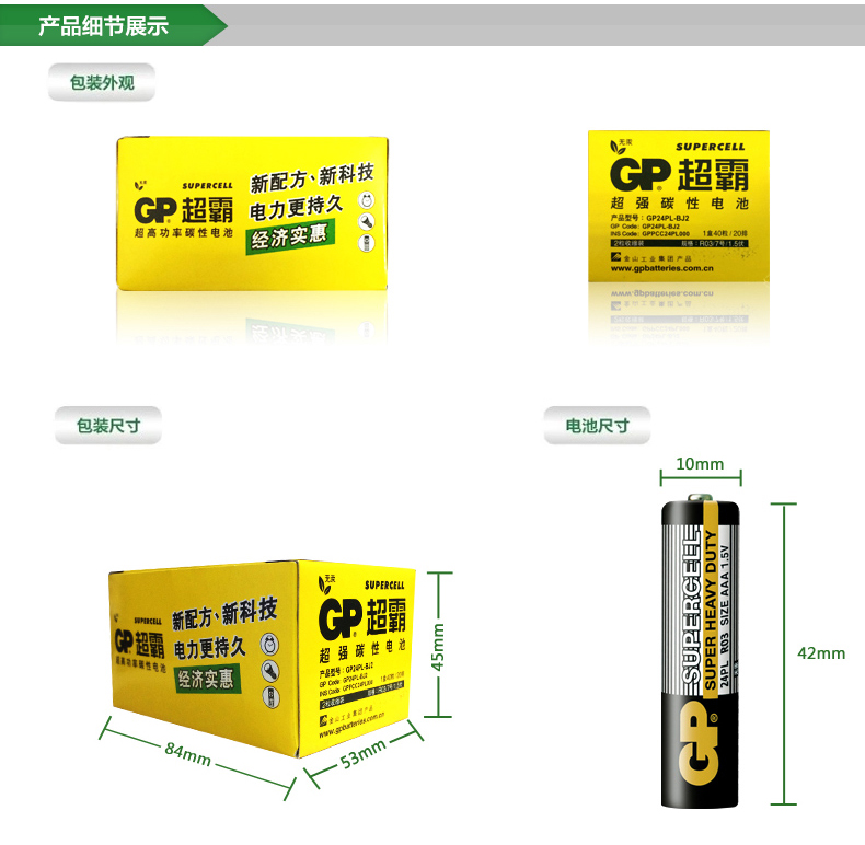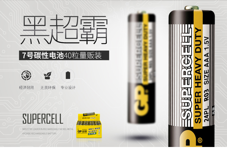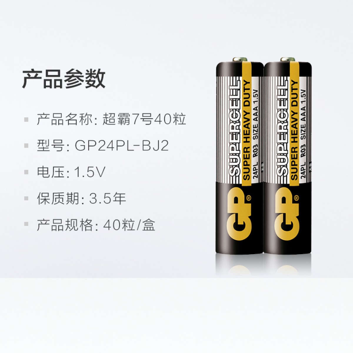 商品名称:GP超霸 7号40粒电池 七号高能无汞碳性干电池