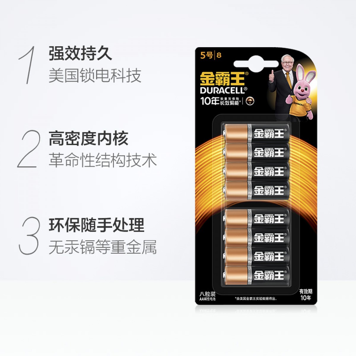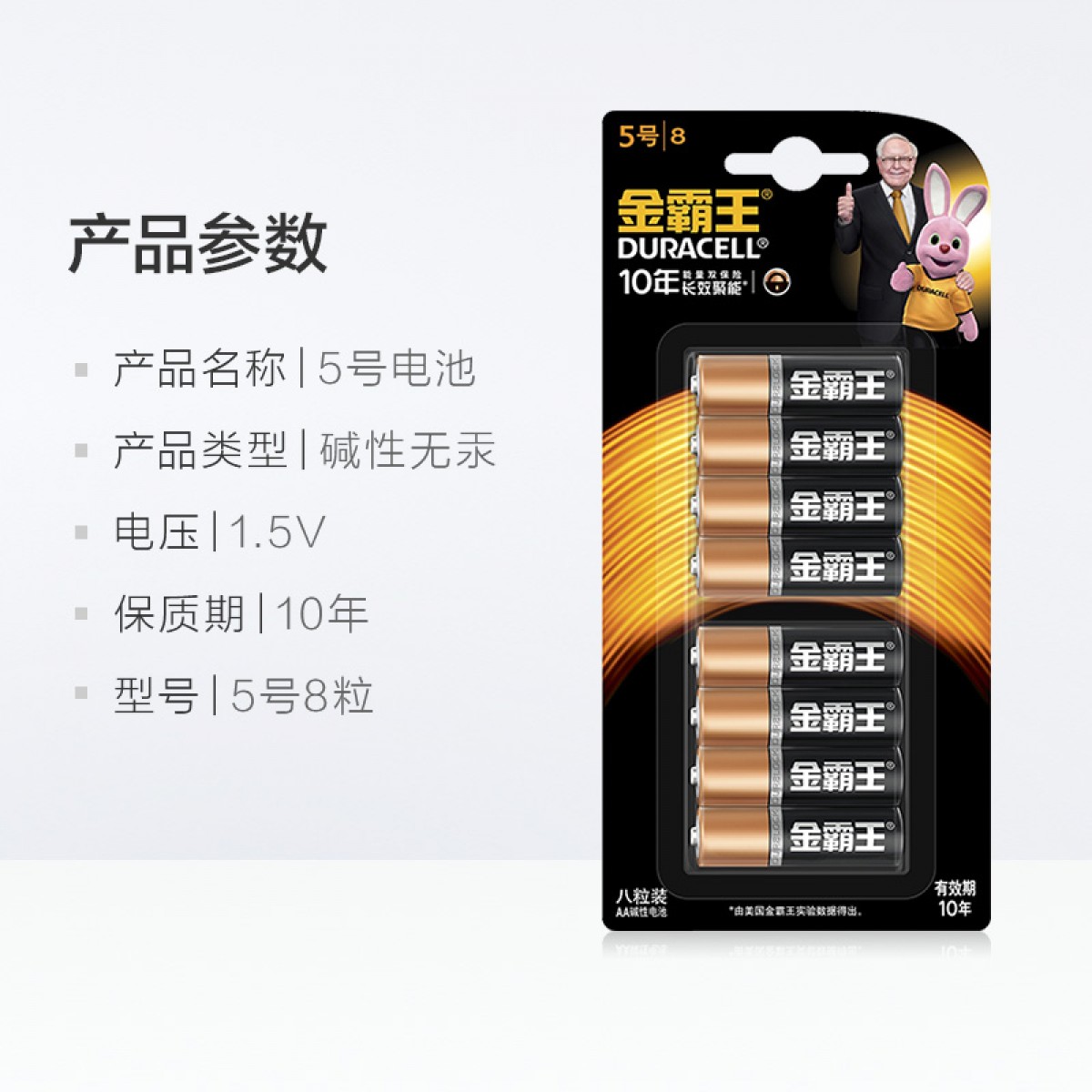 商品名称:金霸王 AA5号电池碱性五号电池 8粒装