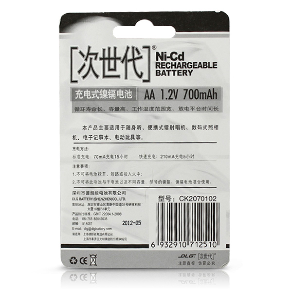 商品名称:次世代 5号电池AA镍镉充电电池700mAh CK2070102