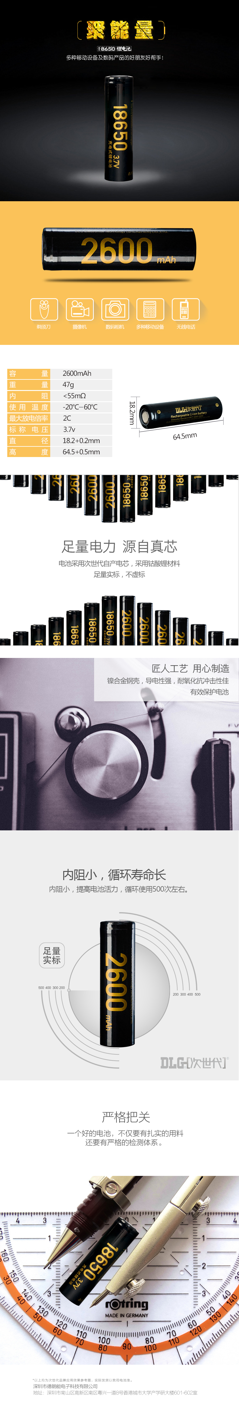 商品名称:次世代 3.7V 充电平头锂电池2600MAH 18650-2600