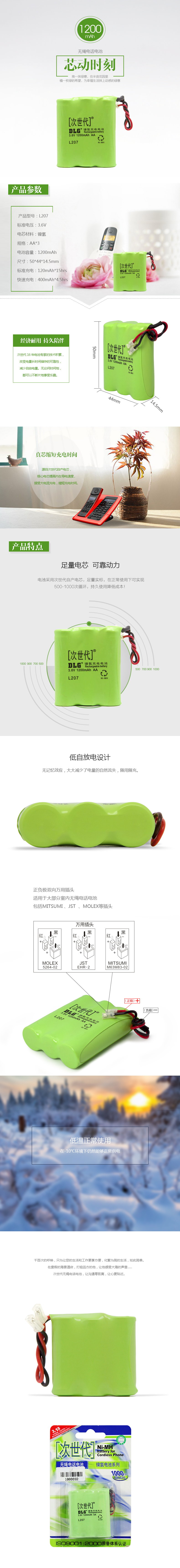 商品名称:次世代 无绳电池 L207 3.6V 1200mAh