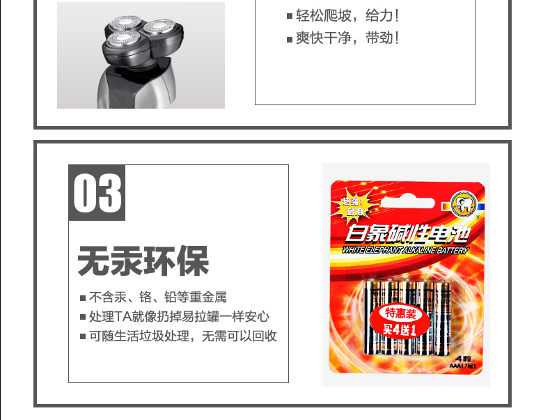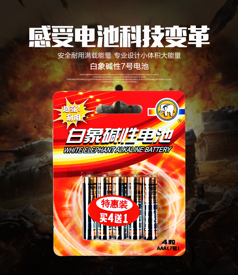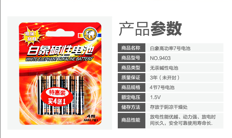 商品名称:白象 碱性电池AAA7号5节 1.5V LR03AAA NO.9403