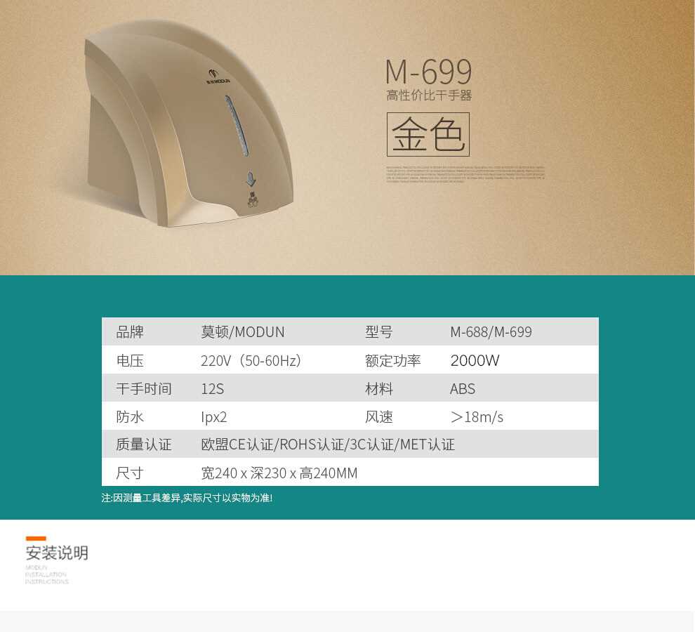 商品名称:莫顿 干手器全自动感应烘手器 M-688