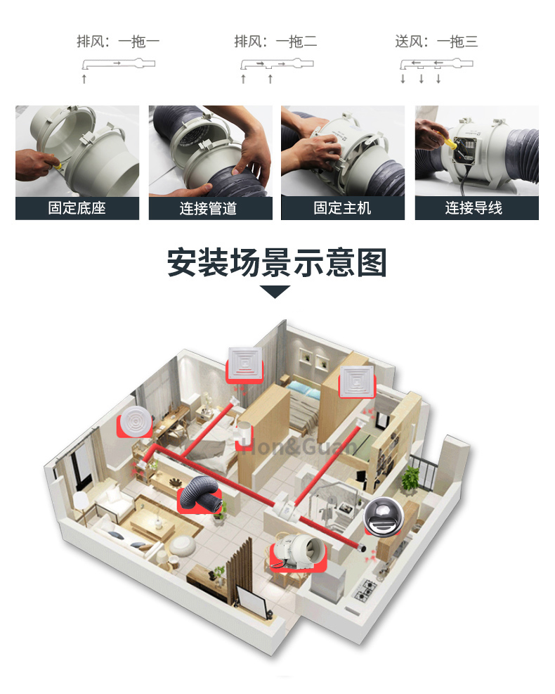 商品名称:鸿冠 管道风机强力排气扇6寸 HG-HF-150P