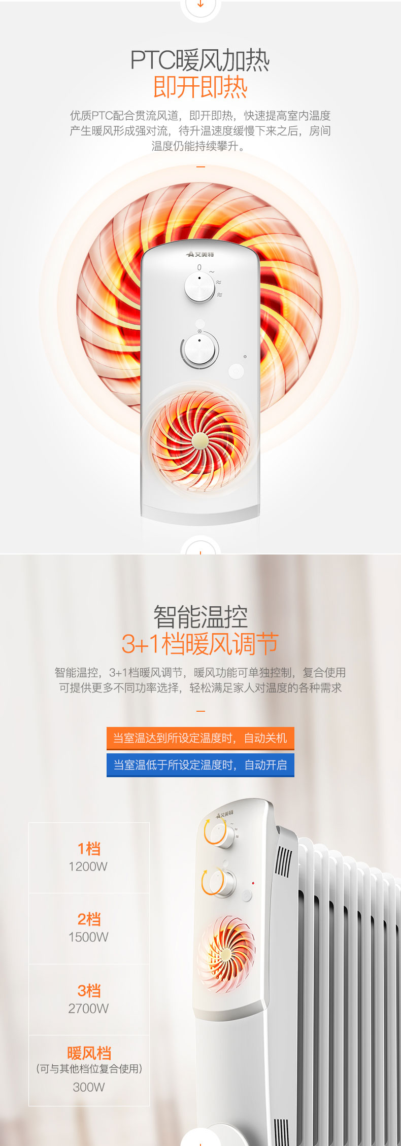 商品名称:艾美特 取暖器家用/电暖器 HU1526-W1
