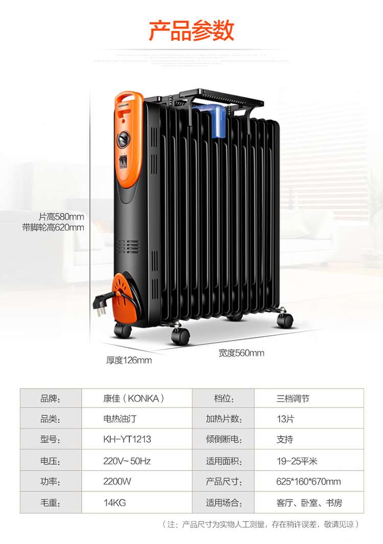 康佳 13片家用电热油汀取暖器/电暖器/电暖气 KH-YT1213