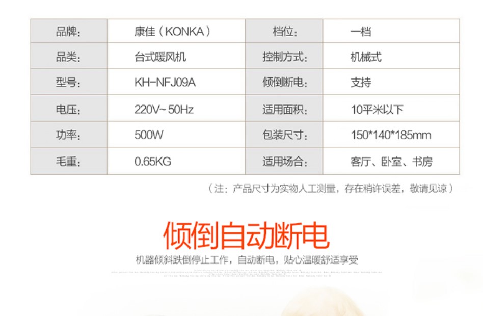 商品名称:康佳 取暖器家用/电暖器/台式暖风机暖气 KH-NFJ09A