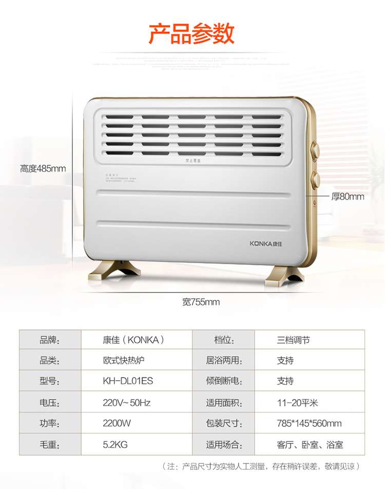 商品名称:康佳 欧式快热炉家用取暖器/电暖器/电暖气 KH-DL01ES