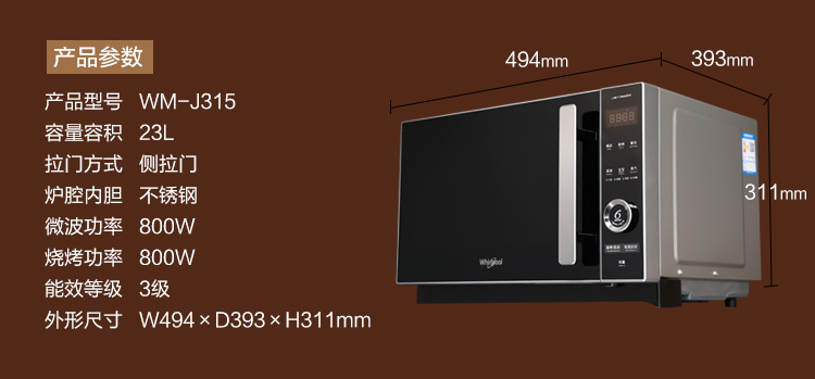 商品名称:惠而浦 微波炉 家用智能微波烧烤23L WM-J315