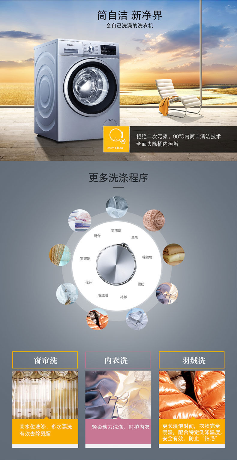 西门子 9KG变频滚筒洗衣机 XQG90-WM12P2689W