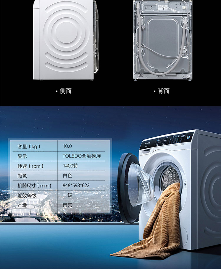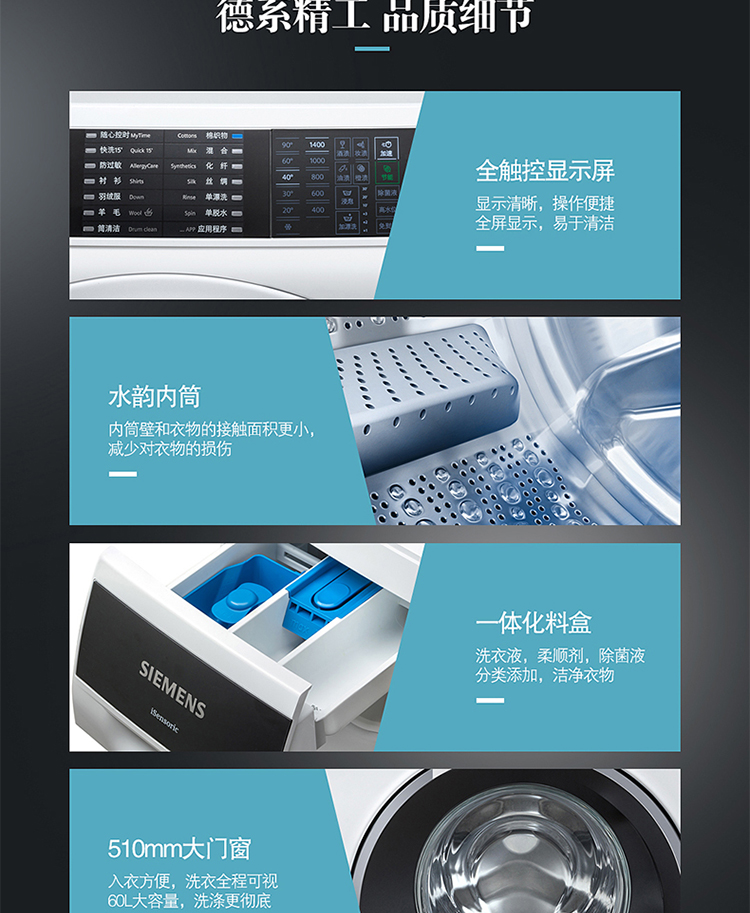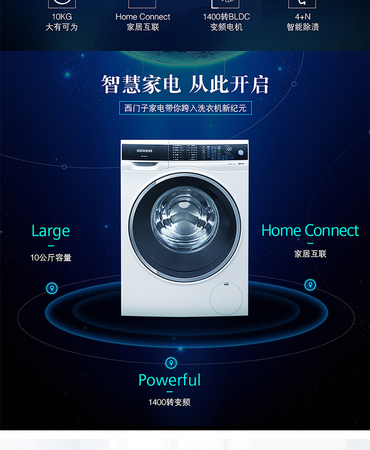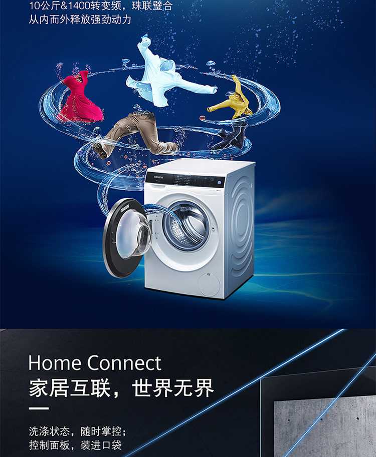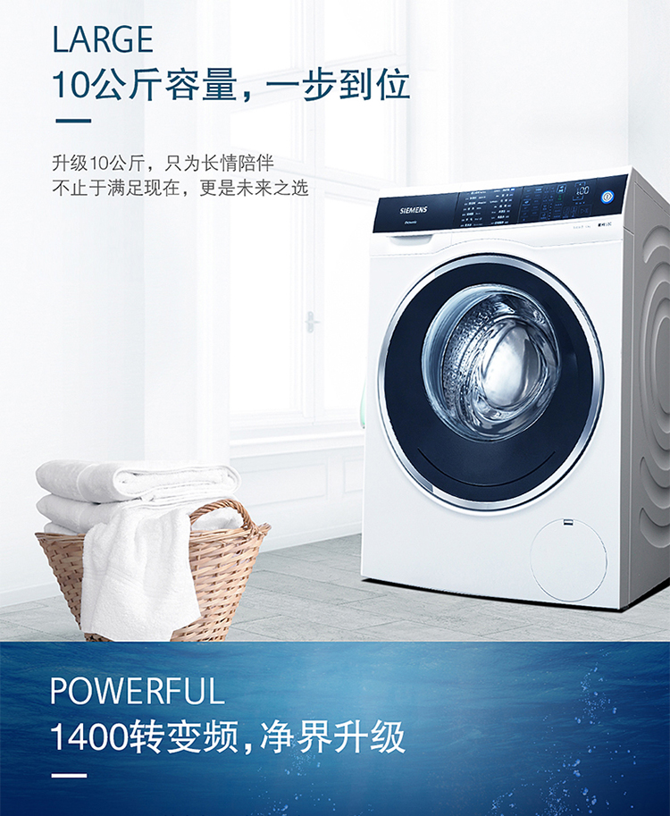 商品名称:西门子 全自动滚筒洗衣机10公斤 WM14U561HW