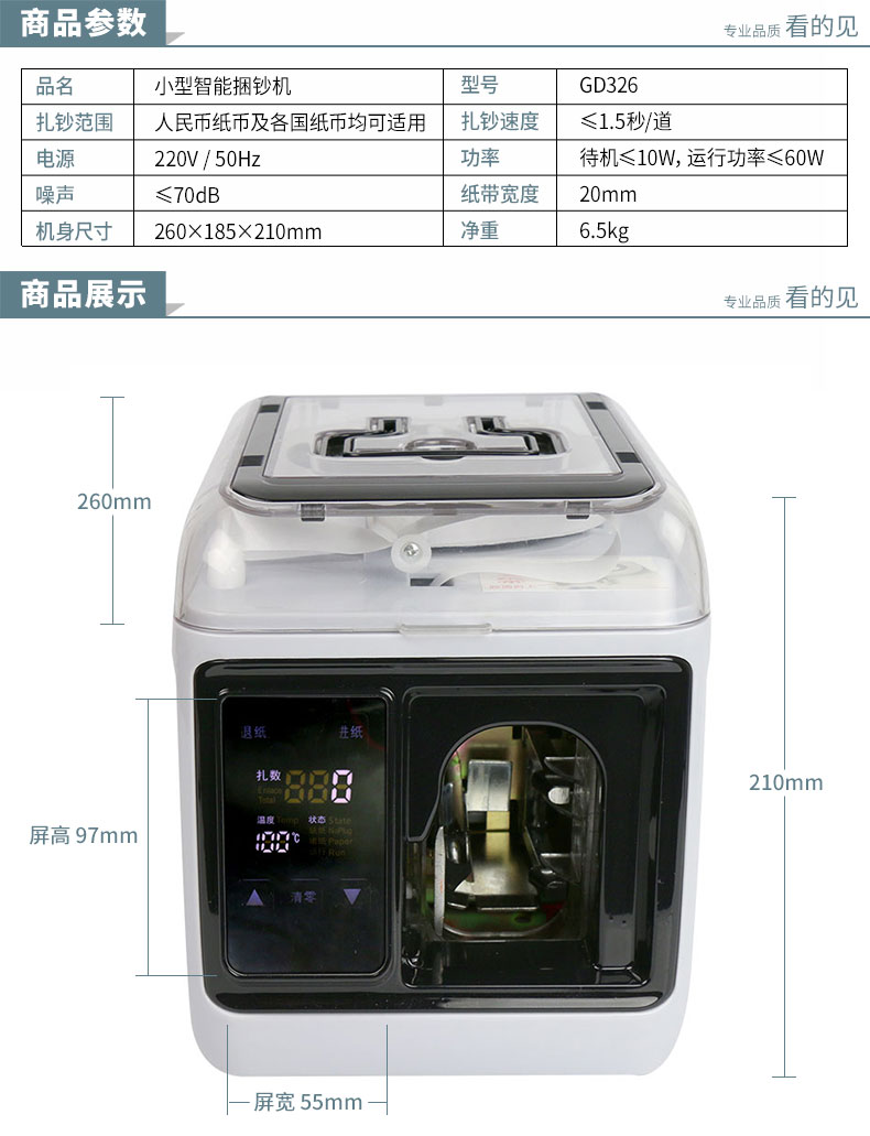 商品名称:古德 触摸屏捆钞机GD326大屏幕捆扎机 小型扎把机 智能扎钞机全自动型