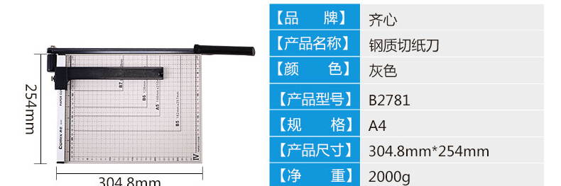 商品名称:齐心 裁纸刀切纸机手动 b5 a4 a3