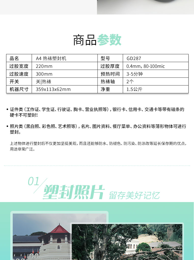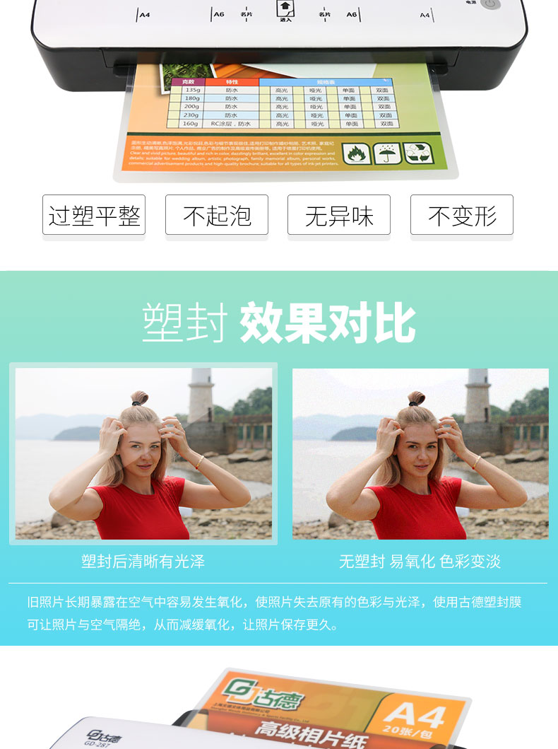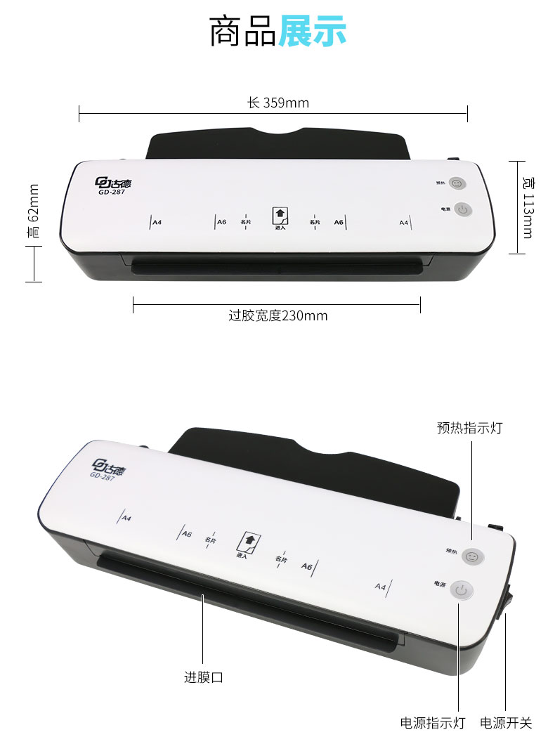 商品名称:古德 A4塑封机照片过塑机相片覆膜机 GD287