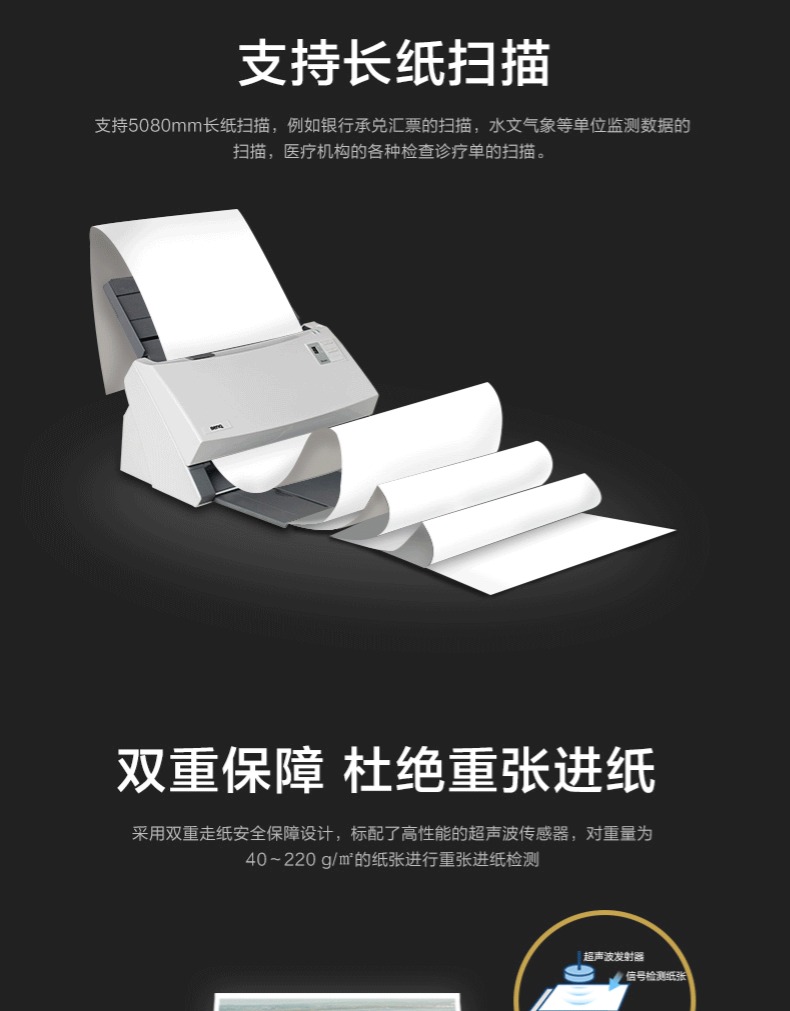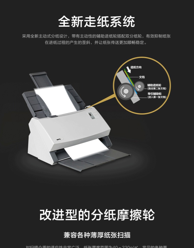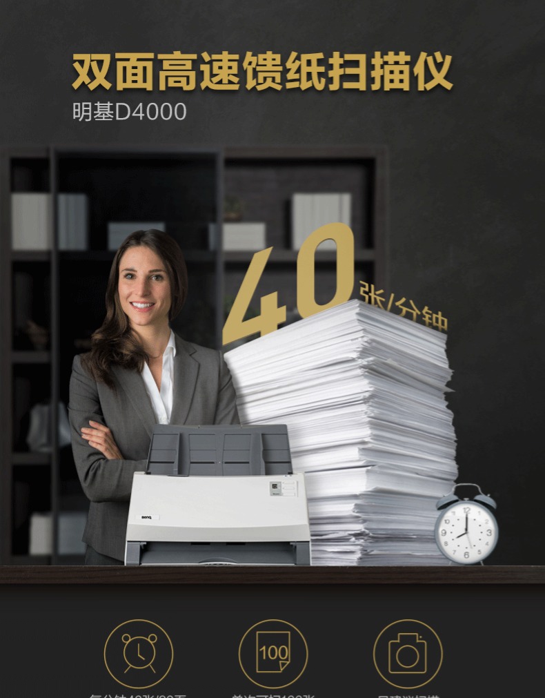 明基/BenQ A4双面高速馈纸扫描仪家用办公顺丰A3拼接票据快递单文件 D4000