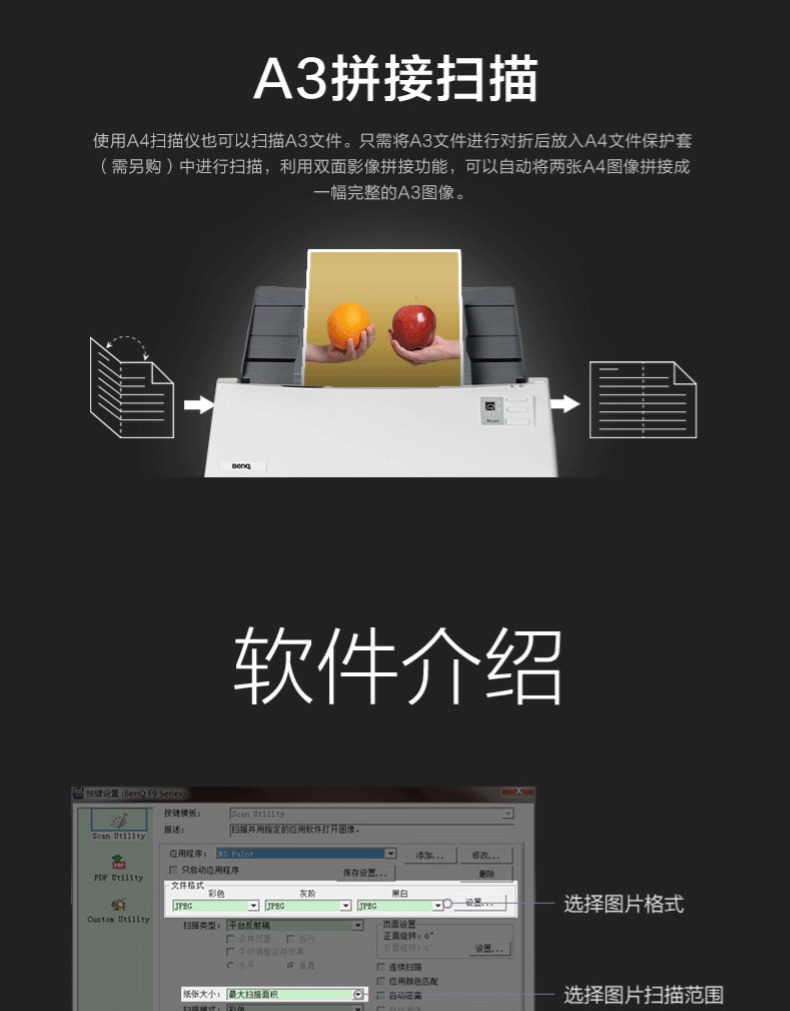 商品名称:明基/BenQ A4双面高速馈纸扫描仪家用办公顺丰A3拼接票据快递单文件 D4000