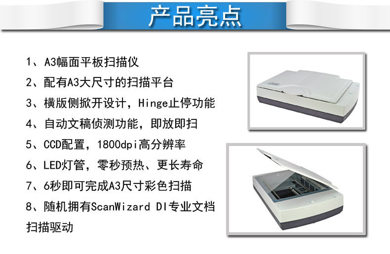 商品名称:中晶/Microtek A3彩色平板文档扫描仪 1860xl