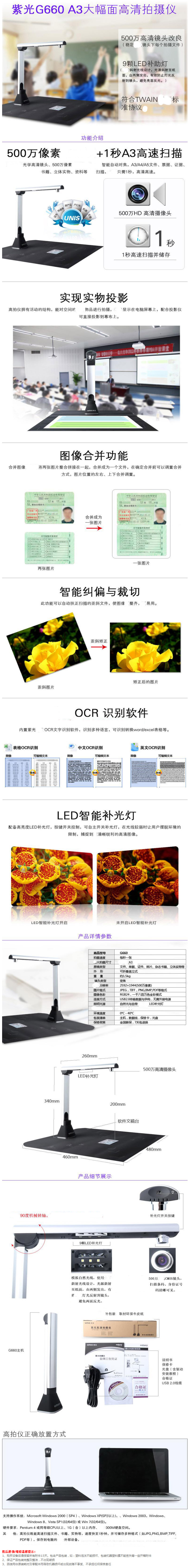 商品名称:清华紫光 高拍仪A3幅面500万像素文件拍摄扫描仪 G660