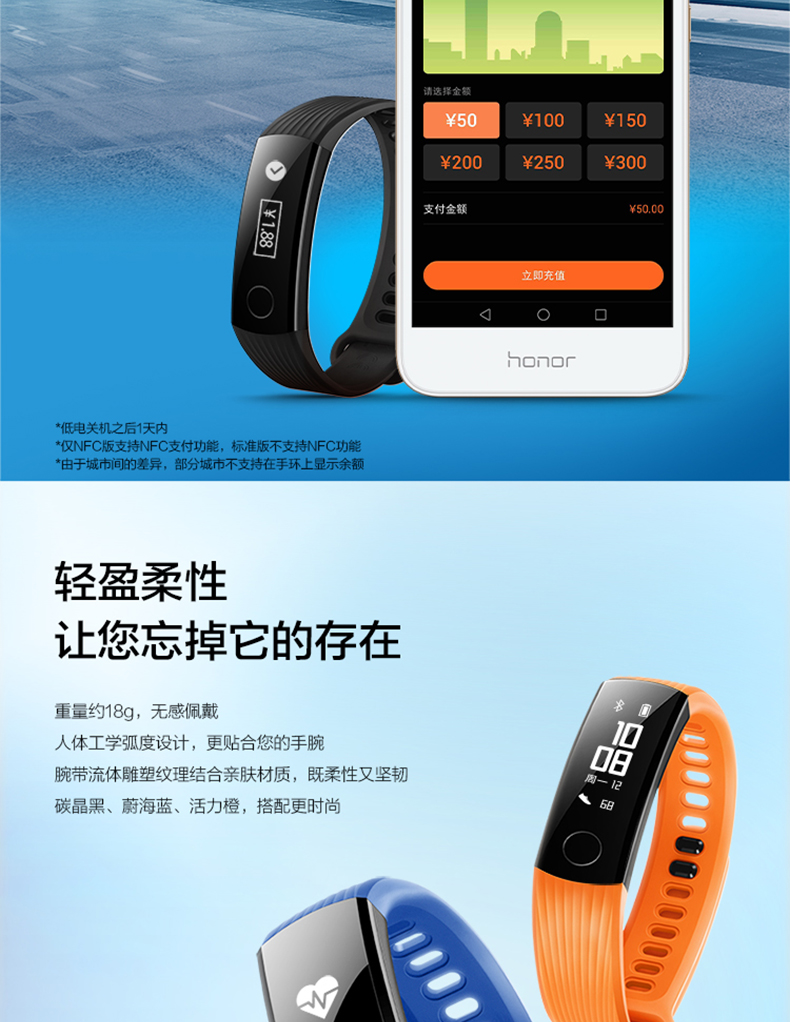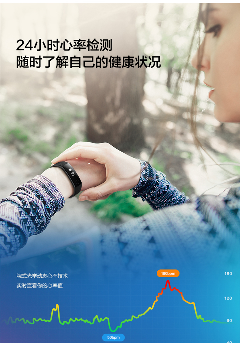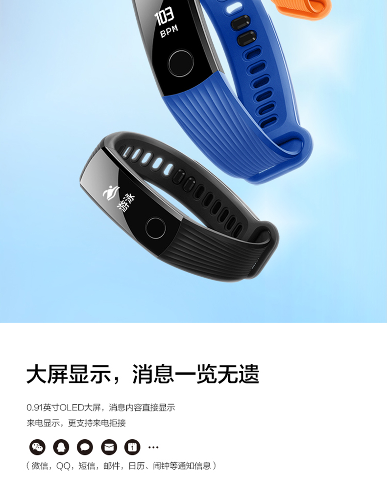 商品名称:荣耀 防水运动计步智能睡眠心率男女手表学生 手环3