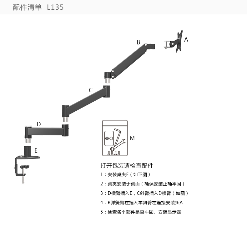商品名称:DVHZ 电脑显示器支架桌面万向显示屏支架适用17-24寸加长横臂 L135
