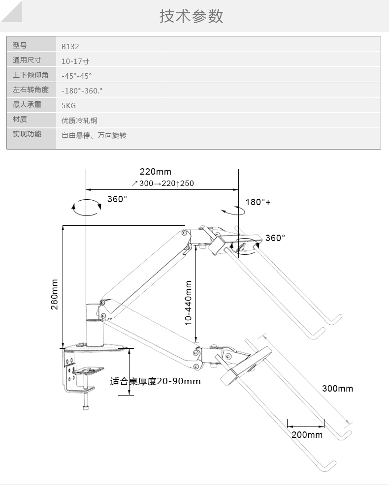 商品名称:DVHZ 笔记本电脑支架 万向自由升降学生宿舍电脑桌懒人电脑架 B132