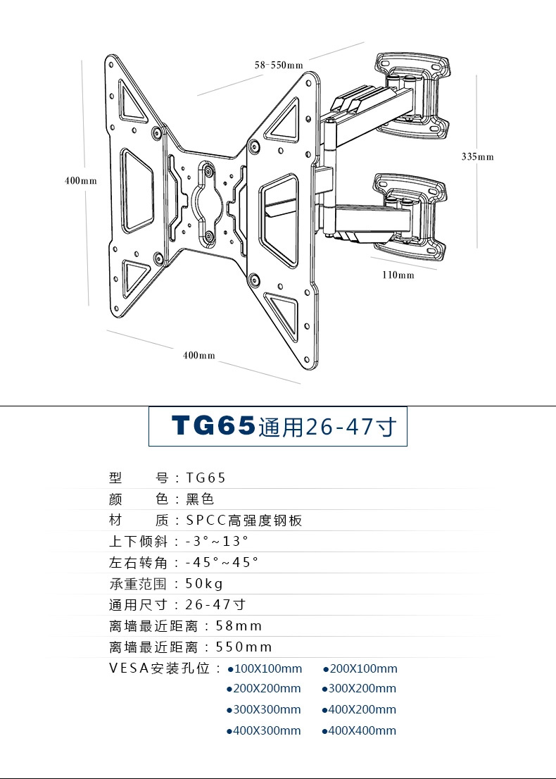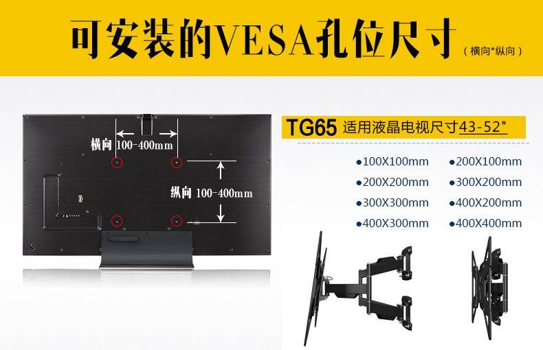 注意:此链接,有A款 B款 C款三个款式可供选择,只是电视机安装头部位孔距的差异,具体请联系客服,